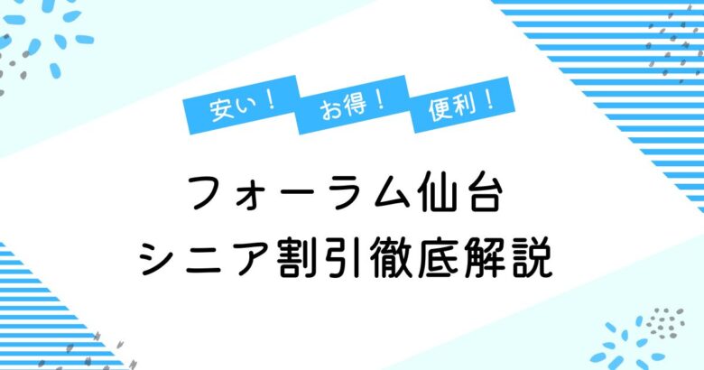 フォーラム仙台ってシニア割引ありそうよね? フォーラム仙台のシニア割引は、60歳以上の方ならいつでもお得に映画を楽しめる制度です。 経済的な負担を抑えながら趣味を続けたい方にとって最適な割引サービスです。 曜日や時間に関係なく利用できるので、... -